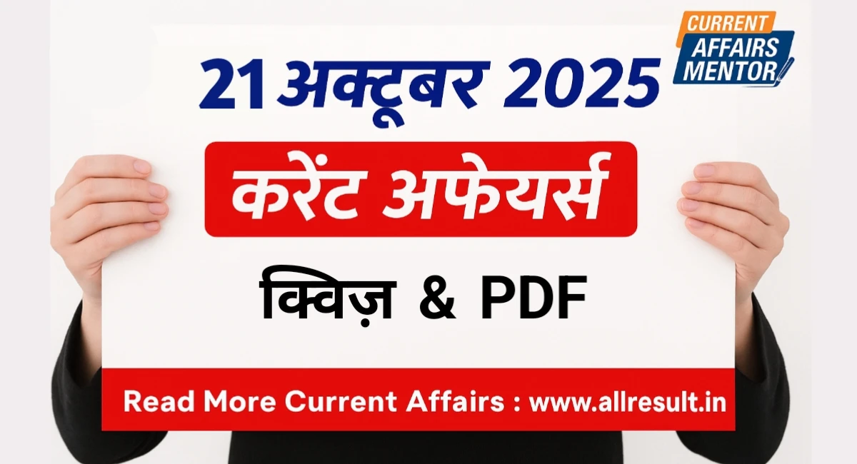 21 अक्टूबर 2025 करेंट अफेयर्स हिंदी में पढ़ें | Today Current Affairs Quiz in Hindi with Answers | Daily GK Questions for SSC, UPSC, Banking, Railway Exams | 21 October 2025 Current Affairs PDF Download.