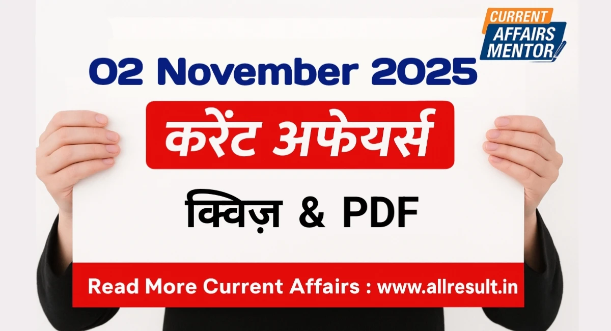 करेंट अफेयर्स क्विज़ : 02 नवंबर 2025 Today Current Affairs Quiz Hindi & English: 02 November 2025