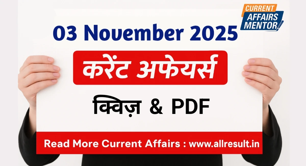 करेंट अफेयर्स : 03 नवंबर 2025 | Today Current Affairs in Hindi And English | Daily GK Quiz