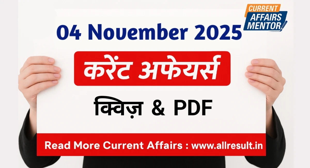 करेंट अफेयर्स : 04 नवंबर 2025 | Today Current Affairs in Hindi And English 04 November 2025