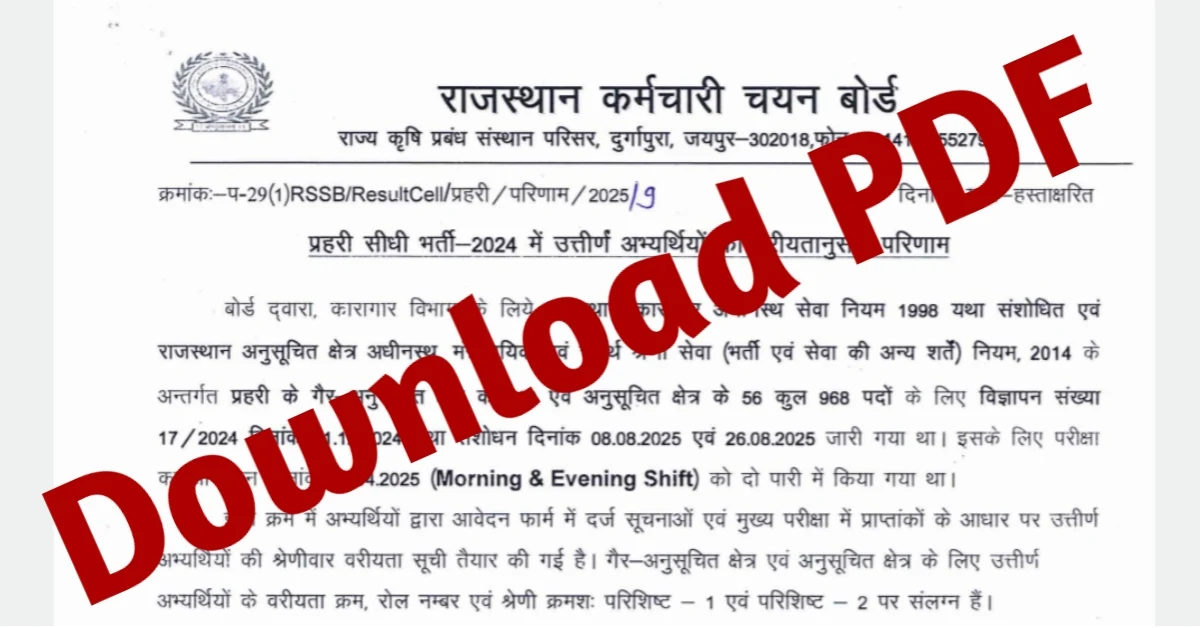 Rajasthan Jail Prahari Result 2025 – Direct Link