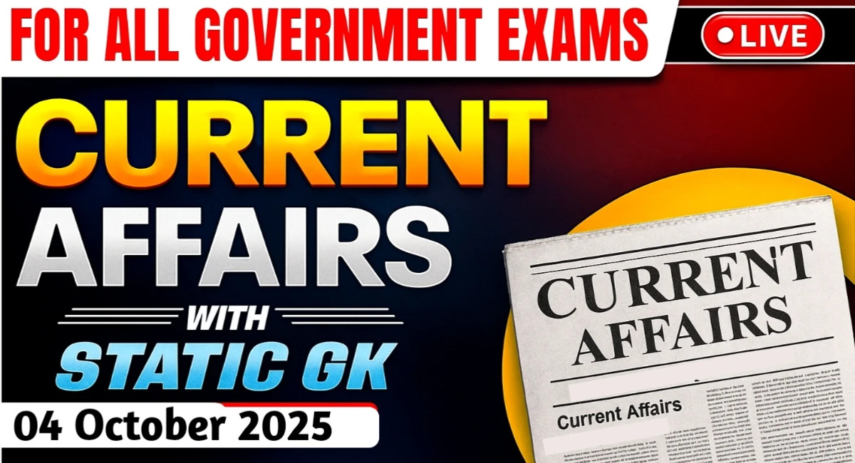 करेंट अफेयर्स 04 अक्टूबर 2025 | Daily Current Affairs in Hindi & English | आज के करेंट अफेयर्स प्रश्नोत्तरी