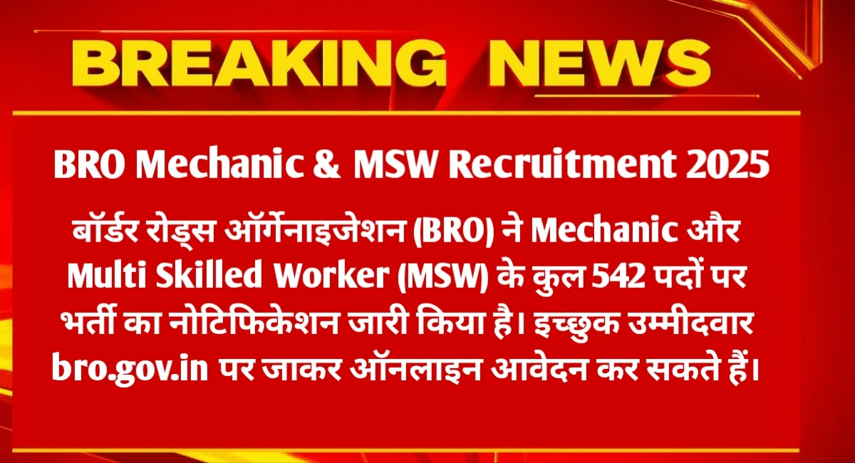 BRO MSW and Vehicle Mechanic Recruitment 2025