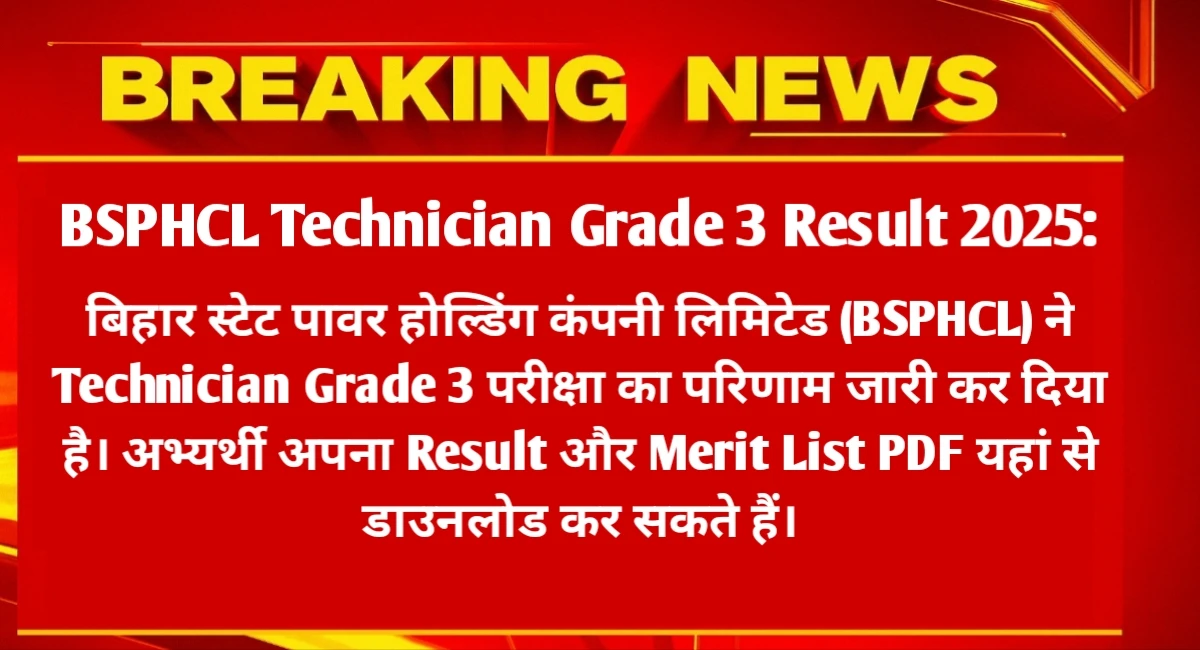 बिहार BSPHCL Technician Grade 3 रिजल्ट 2025 जारी
