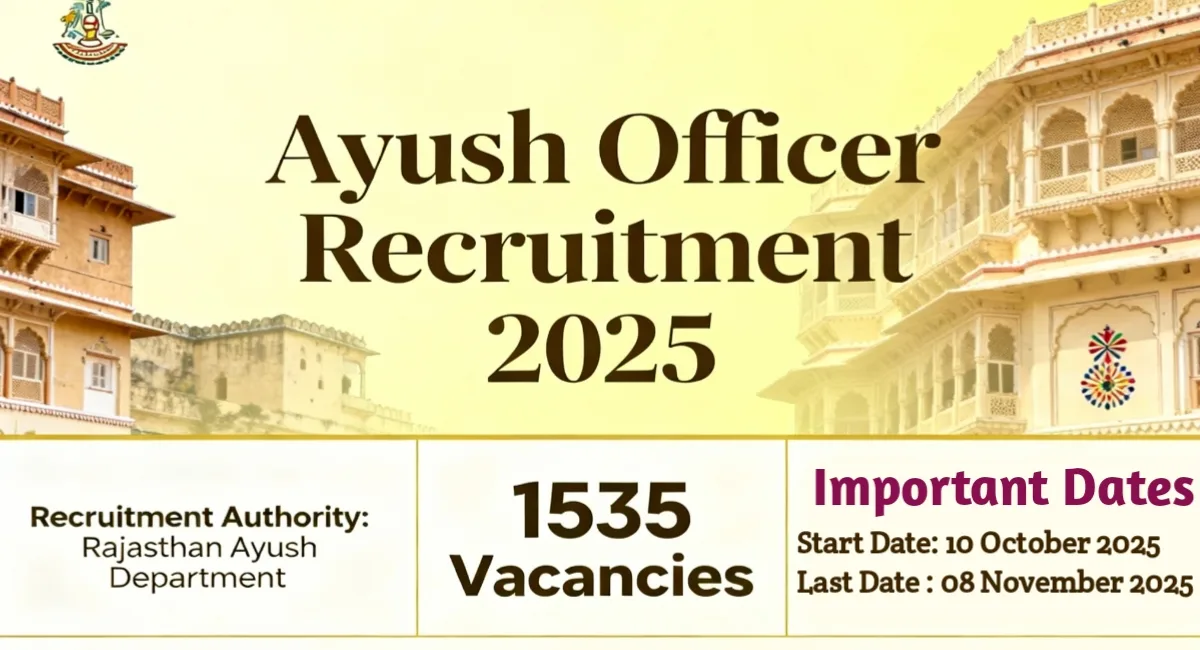 Rajasthan Staff Selection Board (RSSB) has released the official notification for RSSB Ayush Officer Recruitment 2025. A total of 1535 vacancies have been announced for the post of Ayush Officer under the Department of Ayurveda, Yoga and Naturopathy, Unani, Siddha, and Homeopathy (AYUSH), Government of Rajasthan. This is a great opportunity for candidates having qualifications in Ayurvedic or related medical fields to secure a government job in the health sector.